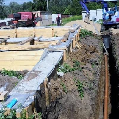 Комфорт в частном доме не мыслим без водоснабжения и канализации. Надежда, владелец строящегося коттеджа в д.Большое Терюшево заказала в нашей фирме обустройство скважины и автономной канализации сразу после возведения фундамента будущего дома. Согласовав с Надежной проекты, мы доставили на участок все необходимое оборудование, материалы и технику. В тот же день бригада приступила к землеройным работам.
